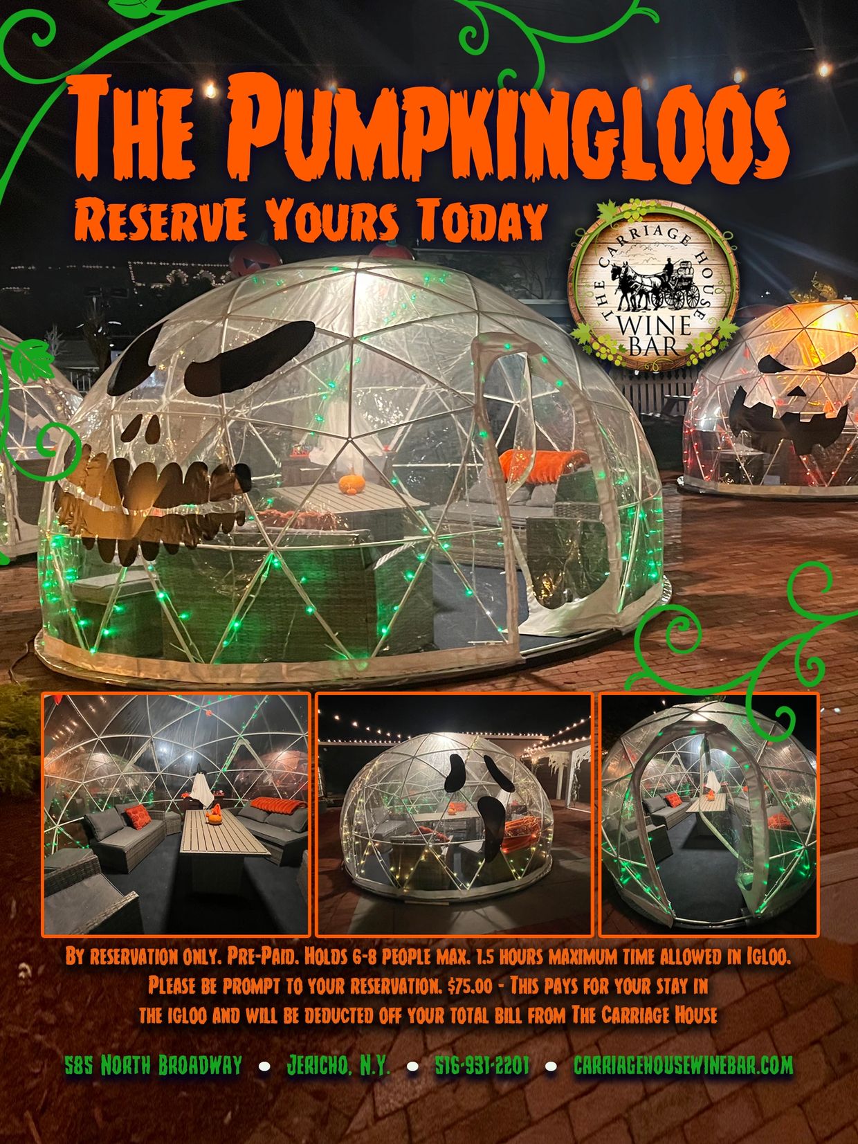 Each Pumpkingloo comfortably accommodates 6 to 8 guests and can be reserved for up to 1.5 hours. To secure your reservation, a $75 prepaid deposit is required, which will be applied to your final bill from The Carriage House.